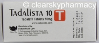 You can buy Tadalista tablets online from Clear Sky Pharmacy at a cheap price. Tadalista 10 mg and 5 mg pills, manufactured by Fortune Health Care, India are supplied in a blister strip of 10 tablets. The 5 mg tablets cost only $0.32 per unit when you place an order for 500 tablets.